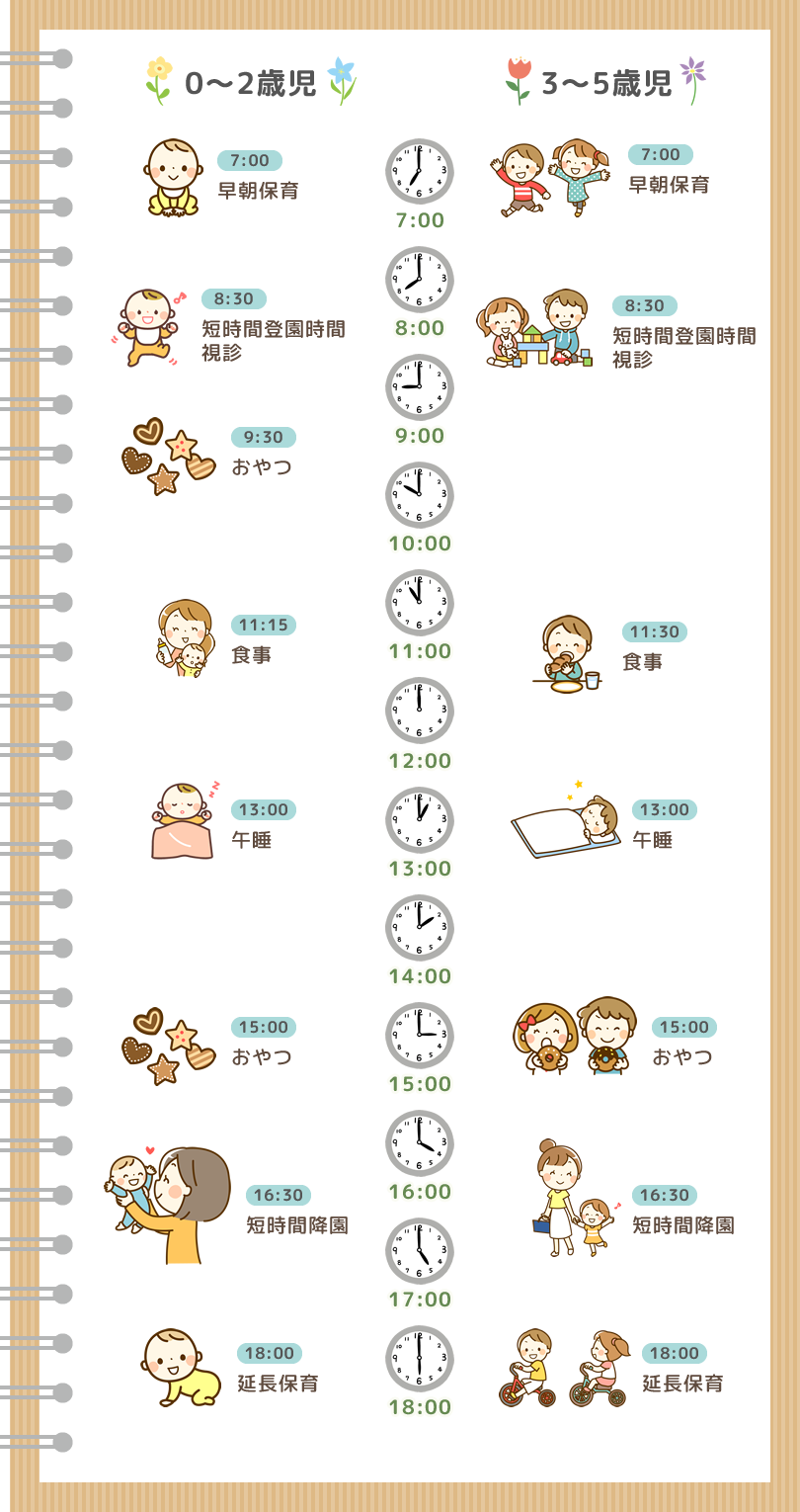 幼児クラスそろっての「朝の会」「帰りの会」をします。みんな元気に笑顔かな。